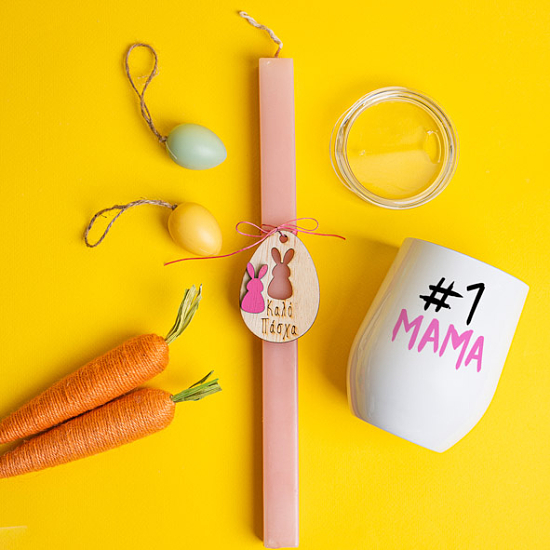 #1 Μαμά - Λαμπάδα Με Κούπα Θερμός Λαμπάδα Με Ξύλινο Στολίδι Και Κούπα Θερμός 355ml
