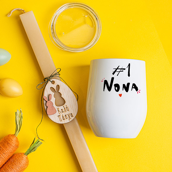 #1 Νονά - Λαμπάδα Με Κούπα Θερμός Λαμπάδα Με Ξύλινο Στολίδι Και Κούπα Θερμός 355ml