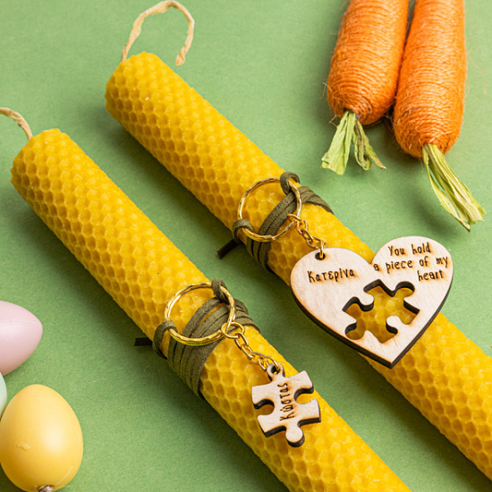 Πακέτο λαμπάδων απευθυνόμενες σε ζευγάρια. Οι λαμπάδες είναι ανάγλυφες και κλασάτες, φτιαγμένες από μελισσοκέρι, και συνοδευόμενες η κάθε μια από ένα ξύλινο μπρελόκ , πάνω στα οποία μπορούν να γραφτούν τα ονόματα του ζευγαριού.