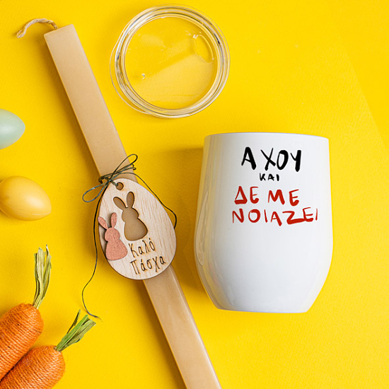 Άχου και δεν με νοιάζει - Λαμπάδα Με Κούπα Θερμός Λαμπάδα Με Ξύλινο Στολίδι Και Κούπα Θερμός 355ml