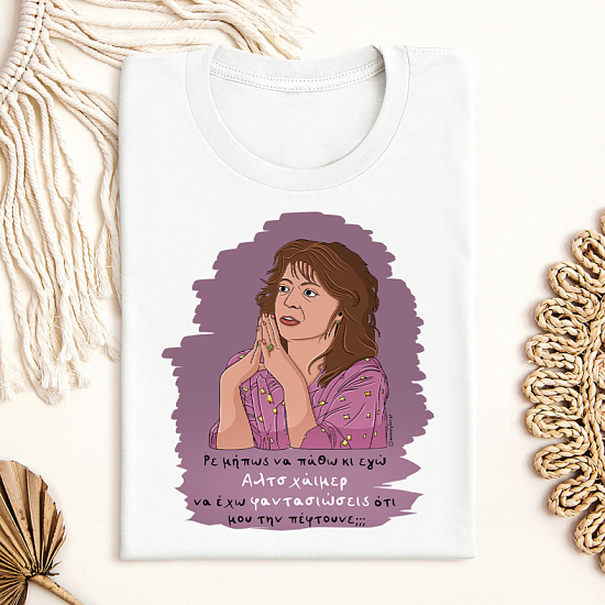 T-shirts από vegan οργανικό βαμβάκι με την ατάκα "Ρε μήπως να πάθω κι εγώ Αλτσχάιμερ να έχω φαντασιώσεις ότι μου την πέφτουνε;;;".
