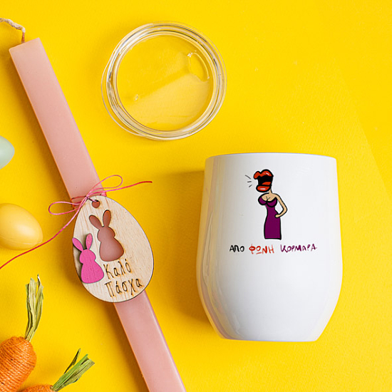 ΑΠΟ ΦΩΝΗ ΚΟΡΜΑΡΑ - Λαμπάδα Με Κούπα Θερμός Λαμπάδα Με Ξύλινο Στολίδι Και Κούπα Θερμός 355ml