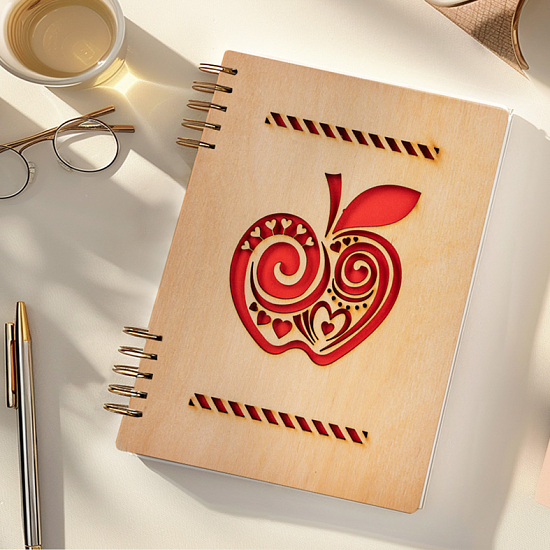 Apple - Ξύλινο Ημερολόγιο Ατζέντα με χαράξεις Ξύλινο Ημερολόγιο Ατζέντα