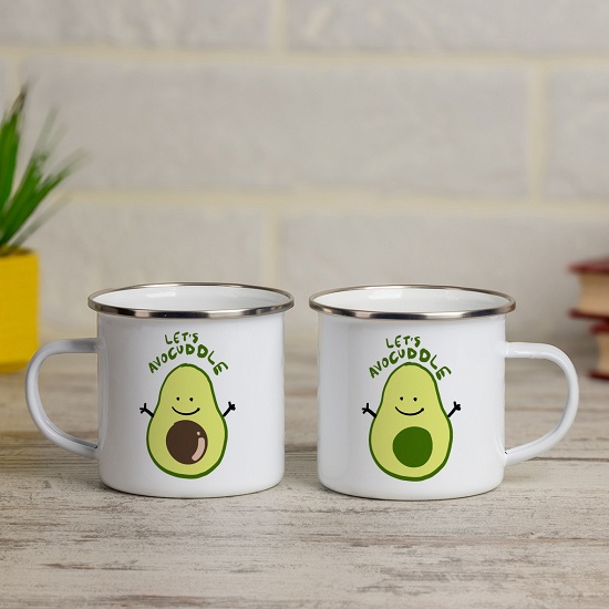 Διάλεξε δύο κούπες vintage εμαγιέ με σχέδιο '' Avocuddle ''  μία για εσένα και μία για τον αγαπημένο σου.