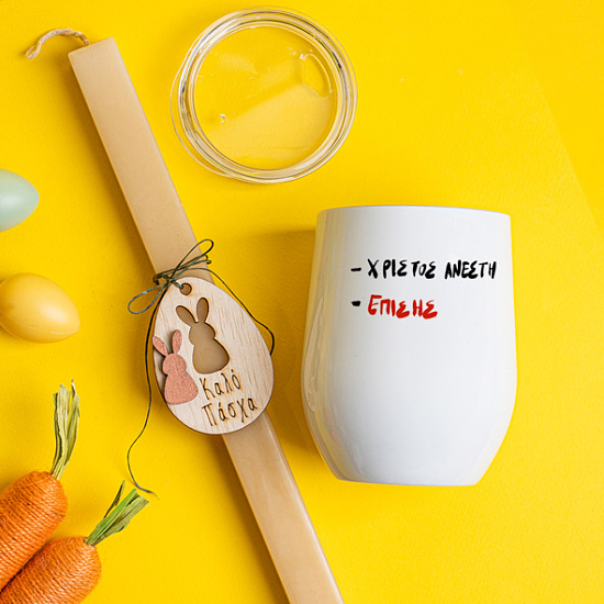 Χριστός Ανέστη! Επίσης! - Λαμπάδα Με Κούπα Θερμός Λαμπάδα Με Ξύλινο Στολίδι Και Κούπα Θερμός 355ml