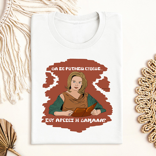 T-shirts από vegan οργανικό βαμβάκι με την ατάκα "ΘΑ ΣΕ ΡΩΤΗΣΩ ΕΥΘΕΩΣ... ΣΟΥ ΑΡΕΣΕΙ Η ΔΑΜΑΛΑ?".
