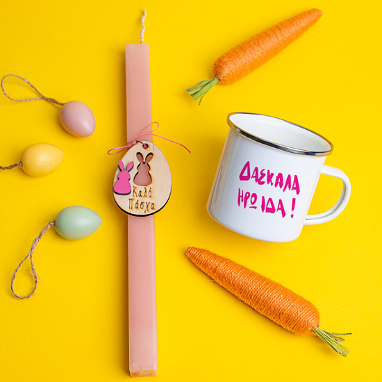 Δασκάλα Ηρωίδα! - Λαμπάδα Με Κούπα Vintage Εμαγιέ Λαμπάδα Με Ξύλινο Στολίδι Και Κούπα Vintage Εμαγιέ