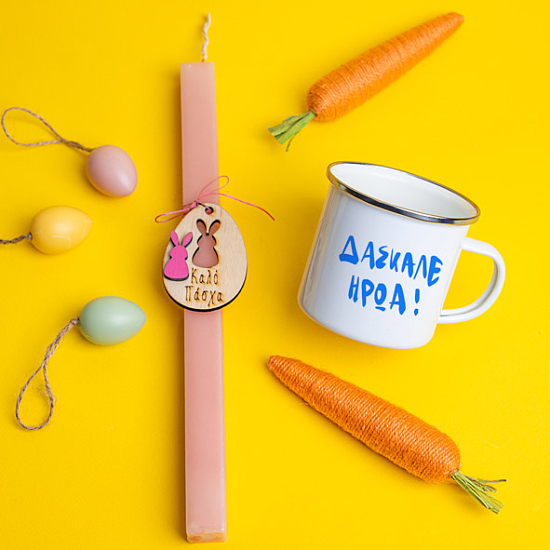 Δάσκαλε Ήρωα! - Λαμπάδα Με Κούπα Vintage Εμαγιέ Λαμπάδα Με Ξύλινο Στολίδι Και Κούπα Vintage Εμαγιέ