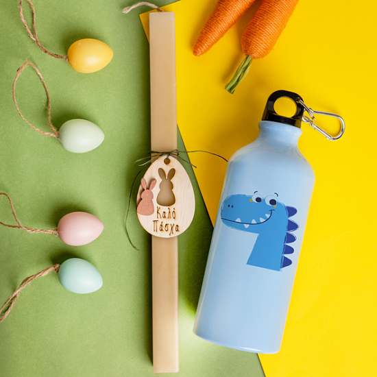 Δεινοσαυράκι - Λαμπάδα Με Ποδηλατικό Μπουκάλι 600ml Λαμπάδα Με Ξύλινο Στολίδι Και Ποδηλατικό Μπουκάλι 600ml