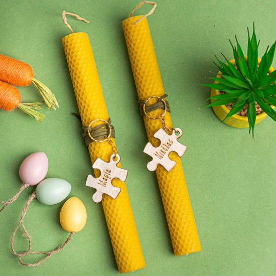 Πακέτο λαμπάδων απευθυνόμενες σε ζευγάρια. Οι λαμπάδες είναι ανάγλυφες και κλασάτες, φτιαγμένες από μελισσοκέρι, και συνοδευόμενες η κάθε μια από ένα ξύλινο μπρελόκ σε στυλ "κομμάτι παζλ", πάνω στα οποία μπορούν να γραφτούν τα ονόματα του ζευγαριού.
