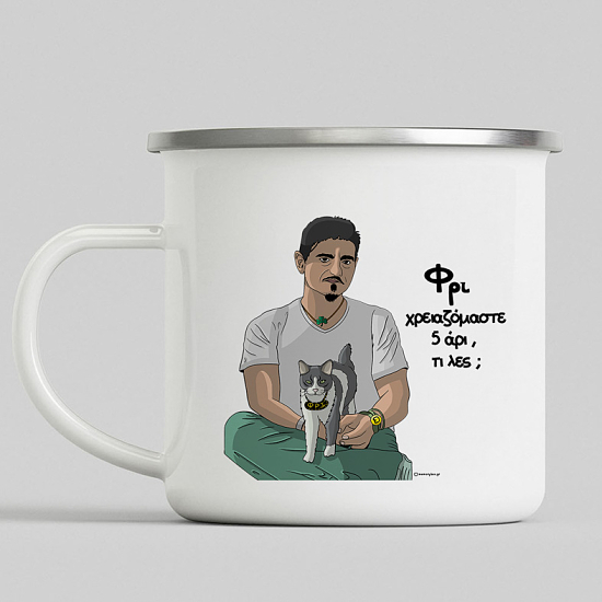 Διάλεξε την κούπα vintage εμαγιέ με σχέδιο "Φρι χρειαζόμαστε 5 άρι, τι λες;" και θα δεις ότι η ανθεκτικότητα της αλλά και το σχέδιο που θα διαλέξεις θα σε συντροφεύει για πολλά χρόνια. Το αγαπημένο σου ρόφημα αξίζει να έχει μια κούπα με στυλ!