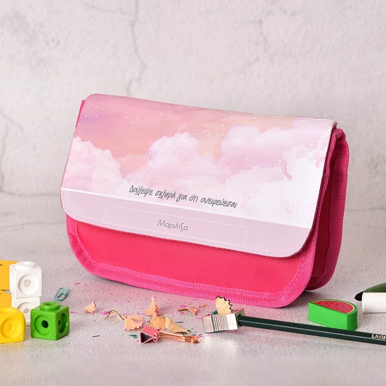 Σχεδίασε την δική σου υφασμάτινη σχολική κασετίνα με το όνομα σου και όποιο άλλο στοιχείο θέλεις και ξεχώρισε στη νέα σχολική χρονιά !Διαθέτει δύο μεγάλες θήκες με φερμουάρ για να βάλεις όλα όσα χρειάζεσαι.