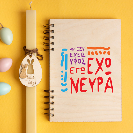 Πακετάκι λαμπάδας με ξύλινο ημερολόγιο ατζέντα, ιδανικό για να προγραμματίσεις κάθε στιγμή του Πάσχα με στυλ και να μην χάσεις καμία από τις γιορτινές λεπτομέρειες!