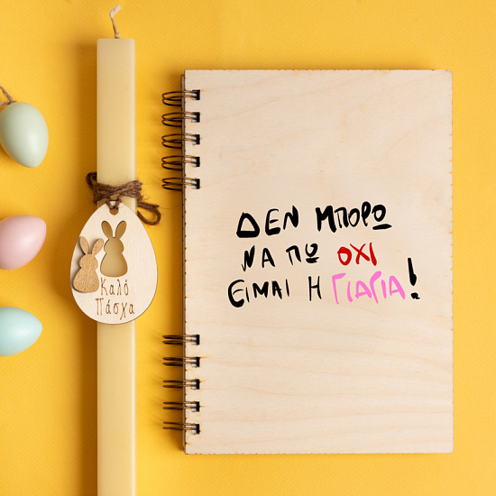 Είμαι η γιαγιά - Λαμπάδα με Ατζέντα Λαμπάδα με Ξύλινο Στολίδι και Ξύλινο Ημερολόγιο Ατζέντα