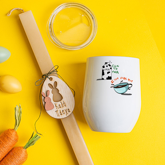 Είσαι το γάλα στον καφέ μου - Λαμπάδα Με Κούπα Θερμός Λαμπάδα Με Ξύλινο Στολίδι Και Κούπα Θερμός 355ml