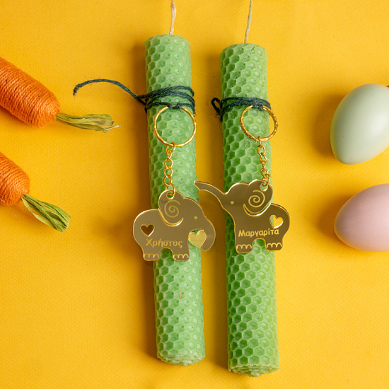 Ελεφαντάκια Plexi Glass - Διπλή Λαμπάδα Από Μελισσοκέρι Λαμπάδες Από Μελισσοκέρι με Set Μπρελόκ Plexiglass