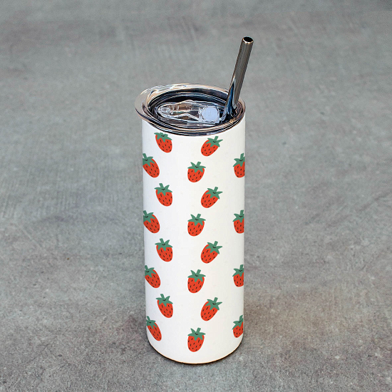 Φράουλες - Ποτήρι Θερμός 600ml Ποτήρι Θερμός Με Καλαμάκι