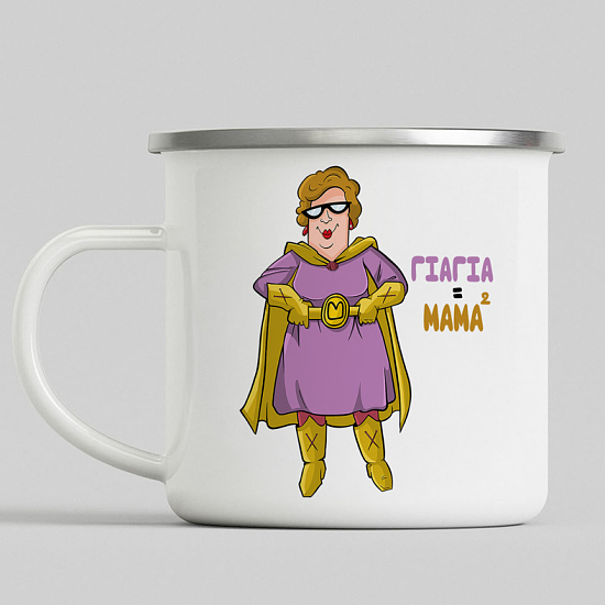 Διάλεξε την κούπα vintage εμαγιέ με σχέδιο "Γιαγιά = Μαμά²" και θα δεις ότι η ανθεκτικότητα της αλλά και το σχέδιο που θα διαλέξεις θα σε συντροφεύει για πολλά χρόνια. Το αγαπημένο σου ρόφημα αξίζει να έχει μια κούπα με στυλ!