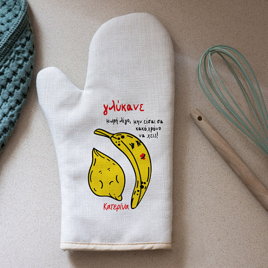 Αποχαιρέτησε τα καμένα δάχτυλα και πες γεια στο νέο αγαπημένο σου αξεσουάρ κουζίνας. Αυτό το παιχνιδιάρικο γάντι κουζίνας δεν είναι απλά ένας ήρωας που σώζει τα χέρια σου από τη θερμότητα του φούρνου και των καυτών κατσαρολών. Είναι επίσης ένα κομψό αξεσουάρ που θα δώσει μια προσωπική νότα στην κουζίνα σου. Διάλεξε το σχέδιο που μιλάει στην ψυχούλα σου όσο και στις γαστρονομικές σου δημιουργίες, και το γάντι κουζίνας σου θα σου γίνει μια ευχάριστη εμμονή.