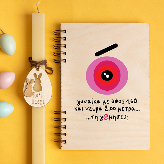 Πακετάκι λαμπάδας με ξύλινο ημερολόγιο ατζέντα, ιδανικό για να προγραμματίσεις κάθε στιγμή του Πάσχα με στυλ και να μην χάσεις καμία από τις γιορτινές λεπτομέρειες!