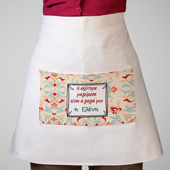 Αυτή η κομψή ποδιά μέσης από λινό ύφασμα όχι μόνο προστατεύει τα ρούχα σου από πιτσιλιές και λεκέδες, αλλά προσφέρει και μια προσωπική νότα στην κουζίνα σου. Διάλεξε το σχέδιο που σου ταιριάζει και θα μοιάζεις με επαγγελματία, ακόμα κι αν το μόνο που μαγειρεύεις είναι τοστ για πρωινό.