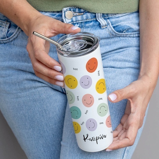 Happy Faces - Ποτήρι Θερμός 500ml Ποτήρι Θερμός Με Καλαμάκι