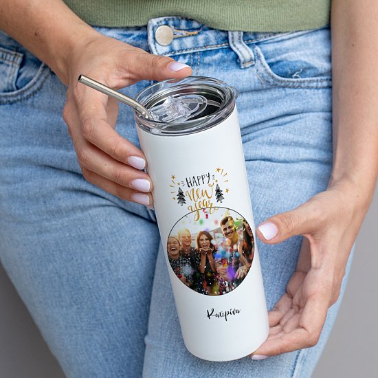 Happy New Year - Ποτήρι Θερμός 600ml Ποτήρι Θερμός Με Καλαμάκι