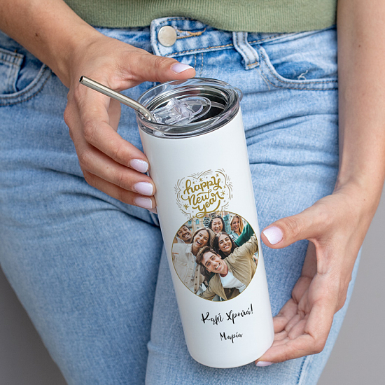 Happy New Year - Ποτήρι Θερμός 600ml Ποτήρι Θερμός Με Καλαμάκι