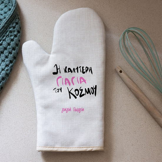 Αποχαιρέτησε τα καμένα δάχτυλα και πες γεια στο νέο αγαπημένο σου αξεσουάρ κουζίνας. Αυτό το παιχνιδιάρικο γάντι κουζίνας δεν είναι απλά ένας ήρωας που σώζει τα χέρια σου από τη θερμότητα του φούρνου και των καυτών κατσαρολών. Είναι επίσης ένα κομψό αξεσουάρ που θα δώσει μια προσωπική νότα στην κουζίνα σου. Διάλεξε το σχέδιο που μιλάει στην ψυχούλα σου όσο και στις γαστρονομικές σου δημιουργίες, και το γάντι κουζίνας σου θα σου γίνει μια ευχάριστη εμμονή.