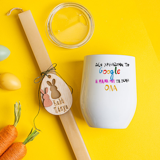 Η Μαμά μου τα ξέρει - Λαμπάδα Με Κούπα Θερμός Λαμπάδα Με Ξύλινο Στολίδι Και Κούπα Θερμός 355ml
