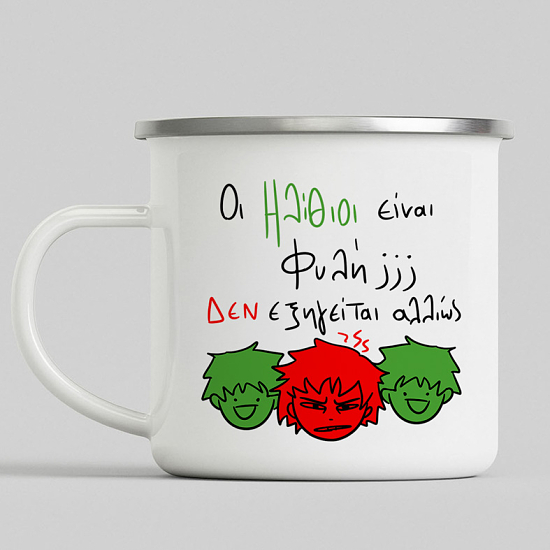 Διάλεξε την κούπα vintage εμαγιέ με σχέδιο "Οι Ηλίθιοι είναι φυλή;;; Δεν εξηγείται αλλιώς" και θα δεις ότι η ανθεκτικότητα της αλλά και το σχέδιο που θα διαλέξεις θα σε συντροφεύει για πολλά χρόνια. Το αγαπημένο σου ρόφημα αξίζει να έχει μια κούπα με στυλ!
