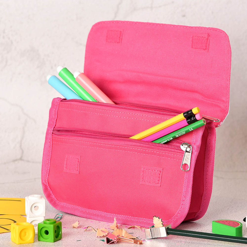 Σχεδίασε την δική σου υφασμάτινη σχολική κασετίνα με το όνομα σου και όποιο άλλο στοιχείο θέλεις και ξεχώρισε στη νέα σχολική χρονιά !Διαθέτει δύο μεγάλες θήκες με φερμουάρ για να βάλεις όλα όσα χρειάζεσαι.