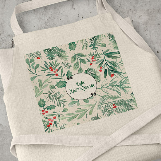 Καλά Χριστούγεννα ΙΙΙ - Ολόσωμη Λινή Ποδιά Κουζίνας Ολόσωμη Λινή Ποδιά Κουζίνας