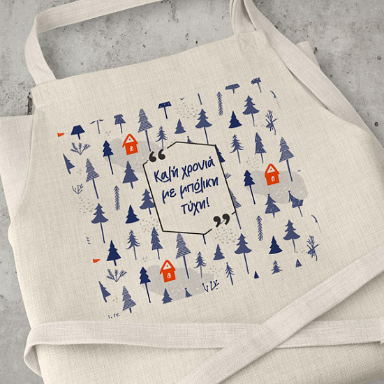 Καλή χρονιά με μπόλικη τύχη - Ολόσωμη Λινή Ποδιά Κουζίνας Ολόσωμη Λινή Ποδιά Κουζίνας