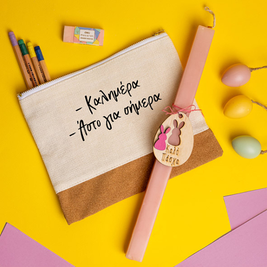 Καλημέρα - Λαμπάδα Με Τσαντάκι - Νεσεσέρ Λαμπάδα Με Ξύλινο Στολίδι Και Τσαντάκι - Νεσεσέρ