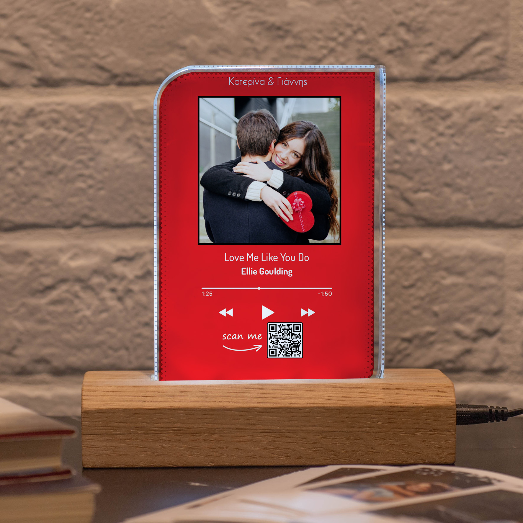 «MyMusicCode» PlexiFrame με ξύλινη φωτιζόμενη βάση LED