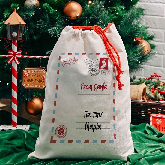 Χριστουγεννιάτικος σάκος από λινό ύφασμα και κόκκινο κορδόνι για τα δώρα σου με σχέδιο ''Letter to Santa''. Γράψε το όνομα αυτού που θα το χαρίσεις δωρεάν και ξεχώρισε!