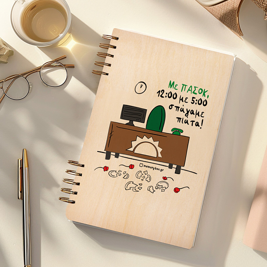 Η Ξύλινη Ατζέντα του Memory Box είναι ο ιδανικός σύντροφος για την καθημερινή οργάνωση! Χαρακτηριστικά της ατζέντας είναι το εκλεπτυσμένο ξύλινο εξώφυλλο, το οποίο προσδίδει μοναδικό χαρακτήρα, αλλά και το μεταλλικό μπρονζέ σπιράλ που δίνει μια κλασική, διαχρονική αίσθηση. Το ξύλινο εξώφυλλο κοσμείται με ένα από τα σχέδια του Memory Box, δίνοντας μια δόσης τσαχπινιάς στο ημερολόγιο σας!