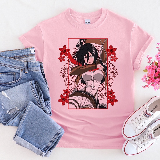 T-shirts από vegan οργανικό βαμβάκι με σχέδιο "Mikasa Anime" σε 4 απίθανα χρώματα (άσπρο, μαύρο , ροζ και στο υπέροχο χρώμα της μέντας)