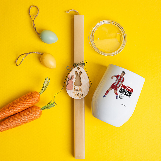 Πακετάκι λαμπάδας με κούπα θερμός, ιδανικό για να κρατήσει τον top ψήστη σε επαγρύπνηση όσο χειρίζεται την πασχαλιάτικη σούβλα.