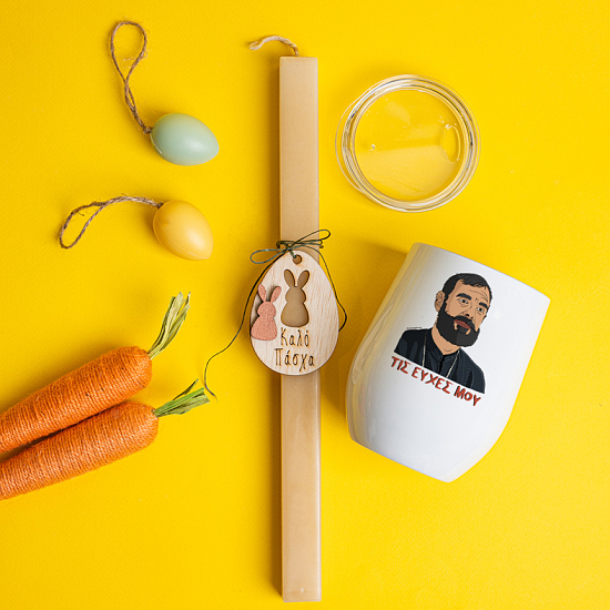 Πακετάκι λαμπάδας με κούπα θερμός, ιδανικό για να κρατήσει τον top ψήστη σε επαγρύπνηση όσο χειρίζεται την πασχαλιάτικη σούβλα.