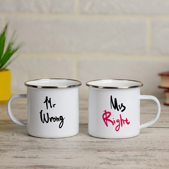 Mr Wrong & Mrs Right - Κούπα Vintage Eμαγιέ Κούπες Vintage Eμαγιέ