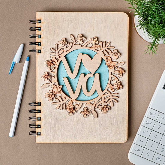 Μοναδική χειροποίητη ατζέντα-planner δώρο για την νονά, φτιαγμένη από φυσικό ξύλο σημύδας, διακοσμημένη με τρισδιάστατο στεφανάκι από λουλουδάκια, την λέξη νονά και μεταλλικό μαύρο σπιράλ.
