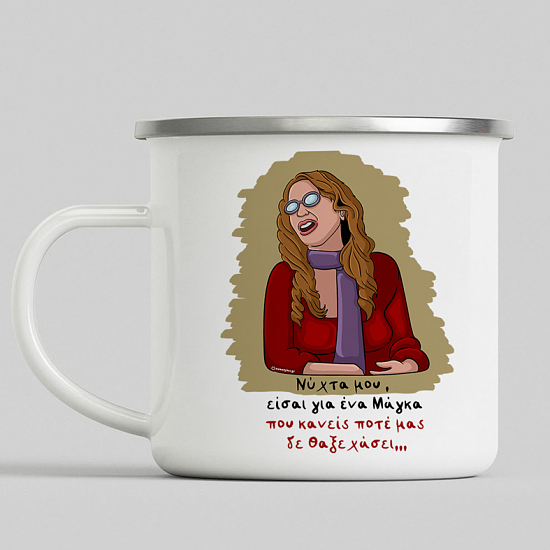 Διάλεξε την κούπα vintage εμαγιέ με σχέδιο "Νύχτα μου, είσαι για ένα Μάγκα που κανείς ποτέ μας δε θα ξεχάσει;;;" και θα δεις ότι η ανθεκτικότητα της αλλά και το σχέδιο που θα διαλέξεις θα σε συντροφεύει για πολλά χρόνια. Το αγαπημένο σου ρόφημα αξίζει να έχει μια κούπα με στυλ!