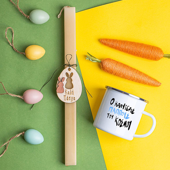 Ο Καλύτερος Παππούς του κόσμου - Λαμπάδα Με Κούπα Vintage Εμαγιέ Λαμπάδα Με Ξύλινο Στολίδι Και Κούπα Vintage Εμαγιέ