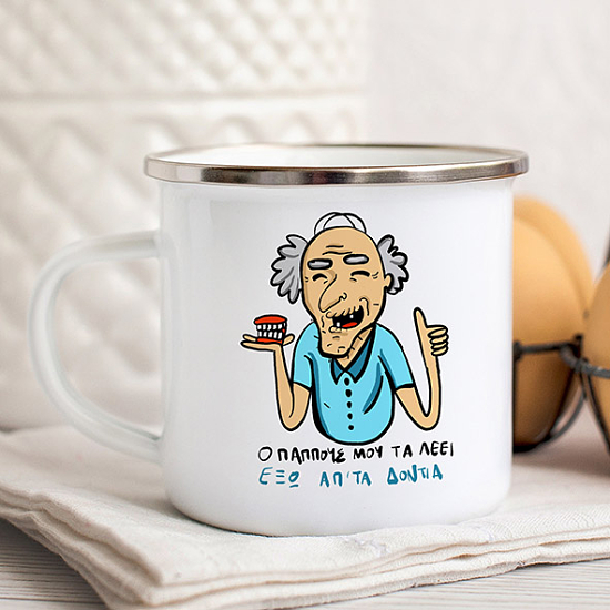 Διάλεξε την κούπα vintage εμαγιέ με σχέδιο "Ο παππού μου τα λέει!" και θα δεις ότι η ανθεκτικότητα της αλλά και το σχέδιο που θα διαλέξεις θα σε συντροφεύει για πολλά χρόνια. Το αγαπημένο σου ρόφημα αξίζει να έχει μια κούπα με στυλ!