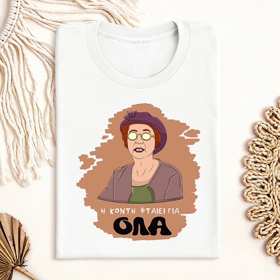 T-shirts από vegan οργανικό βαμβάκι με την ατάκα "Η ΚΟΝΤΗ ΦΤΑΙΕΙ ΓΙΑ ΟΛΑ".