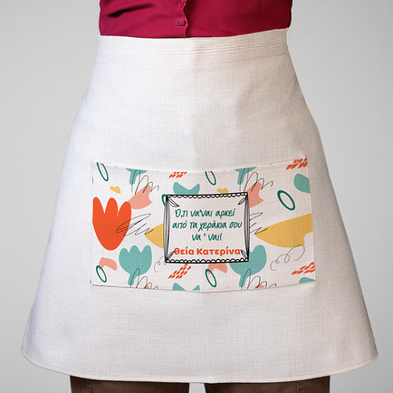 Αυτή η κομψή ποδιά μέσης από λινό ύφασμα όχι μόνο προστατεύει τα ρούχα σου από πιτσιλιές και λεκέδες, αλλά προσφέρει και μια προσωπική νότα στην κουζίνα σου. Διάλεξε το σχέδιο που σου ταιριάζει και θα μοιάζεις με επαγγελματία, ακόμα κι αν το μόνο που μαγειρεύεις είναι τοστ για πρωινό.