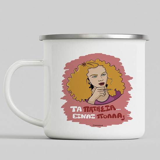 Διάλεξε την κούπα vintage εμαγιέ με σχέδιο "ΤΑ ΠΑΤΗΣΙΑ... ΕΙΝΑΙ ΠΟΛΛΑ;" και θα δεις ότι η ανθεκτικότητα της αλλά και το σχέδιο που θα διαλέξεις θα σε συντροφεύει για πολλά χρόνια. Το αγαπημένο σου ρόφημα αξίζει να έχει μια κούπα με στυλ!