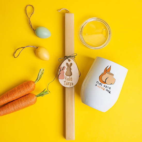 Πακετάκι λαμπάδας με κούπα θερμός, ιδανικό για να κρατήσει τον top ψήστη σε επαγρύπνηση όσο χειρίζεται την πασχαλιάτικη σούβλα.